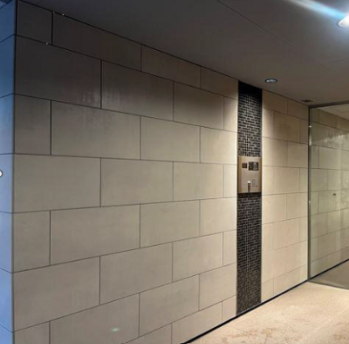 「照度の分布図」・「照度の目安」の資料をもとに、照明の当たり具合や照度を既存よりも少し明るめに設定することで安心感があり、かつ壁面のタイルを新たに張り、上品で高級感のある仕上がりを目指しました。